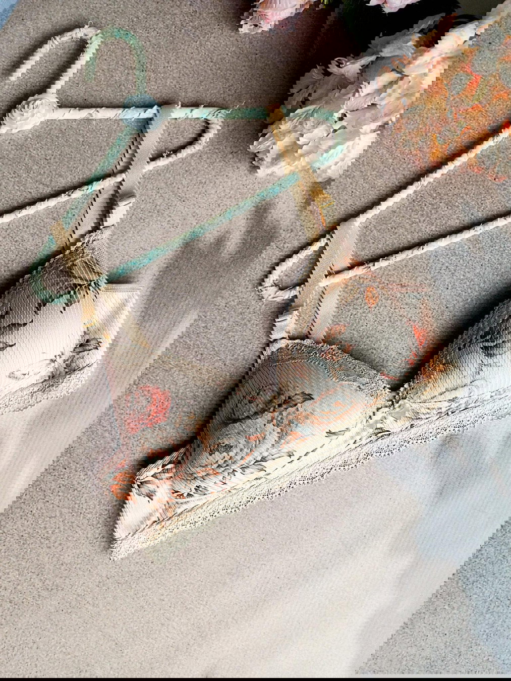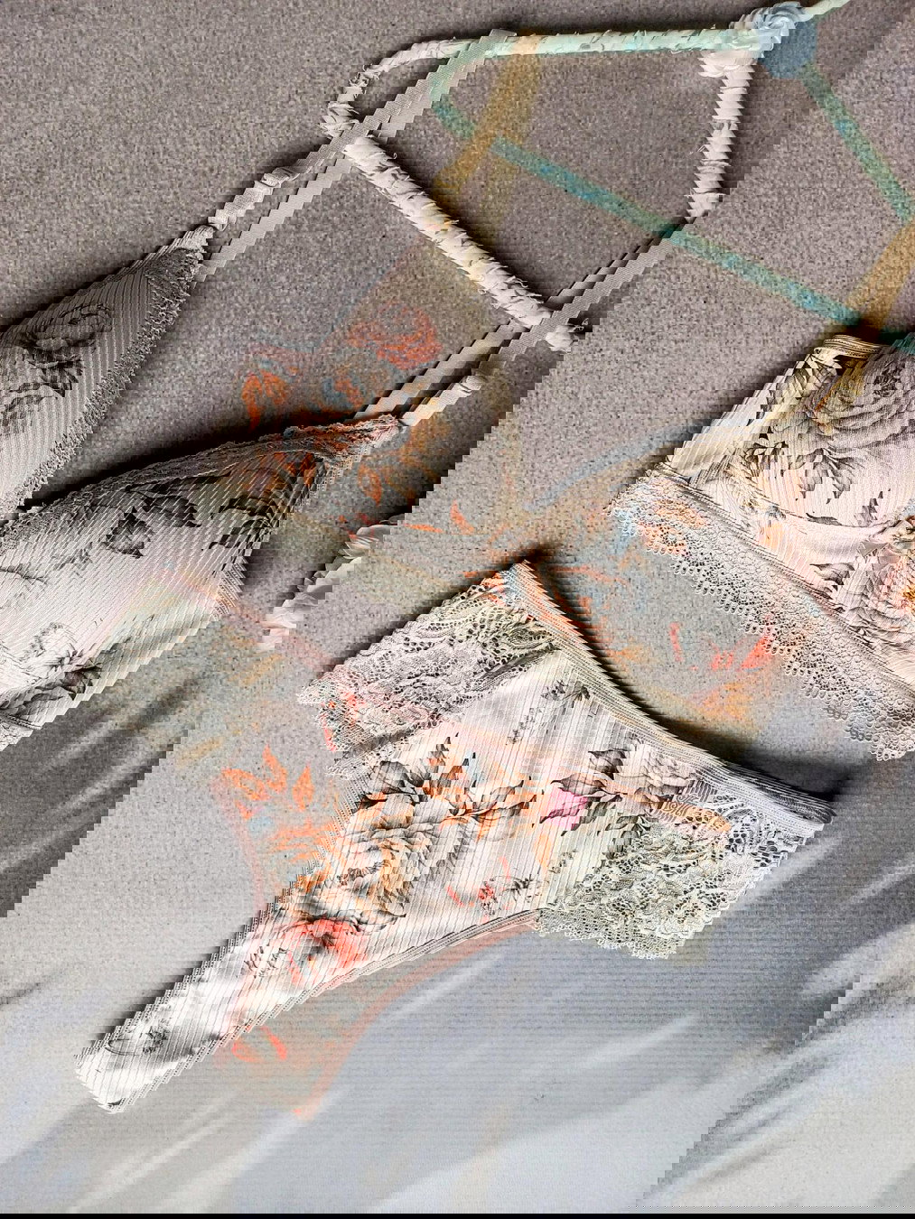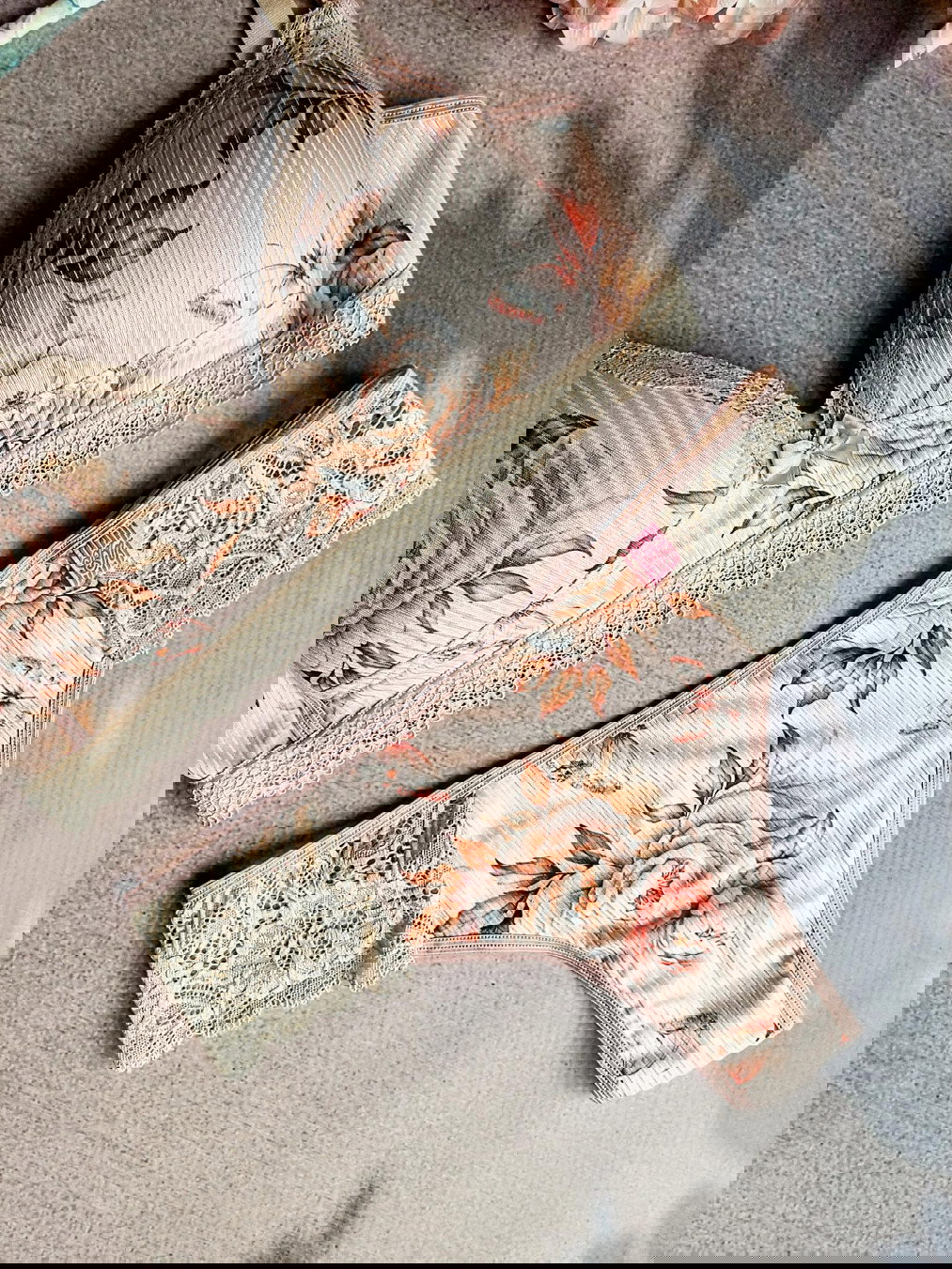 conjunto de corpiño taza soft triangulo y culottin cola less en morley estampado con flores , este modelo de taza es pequeña .