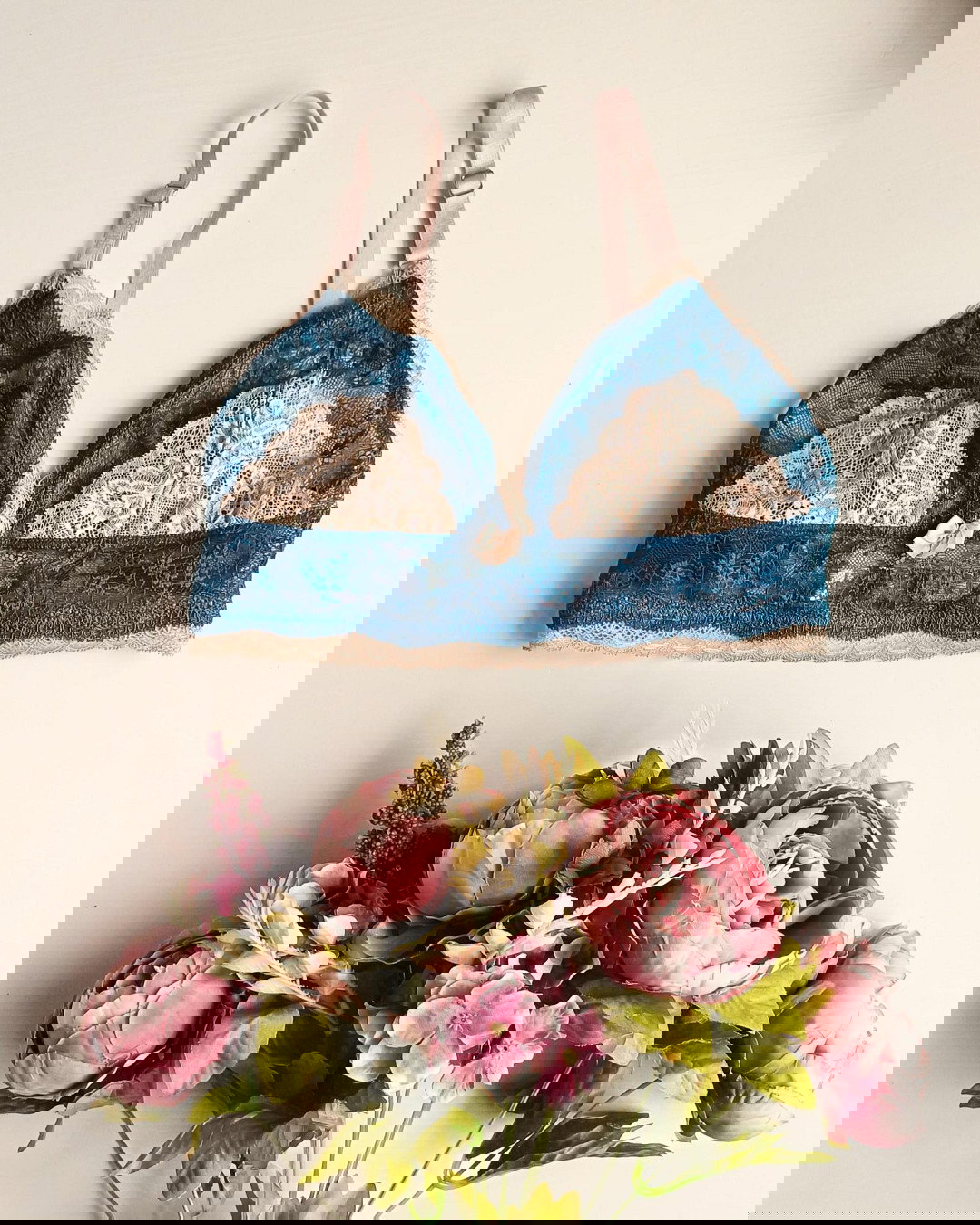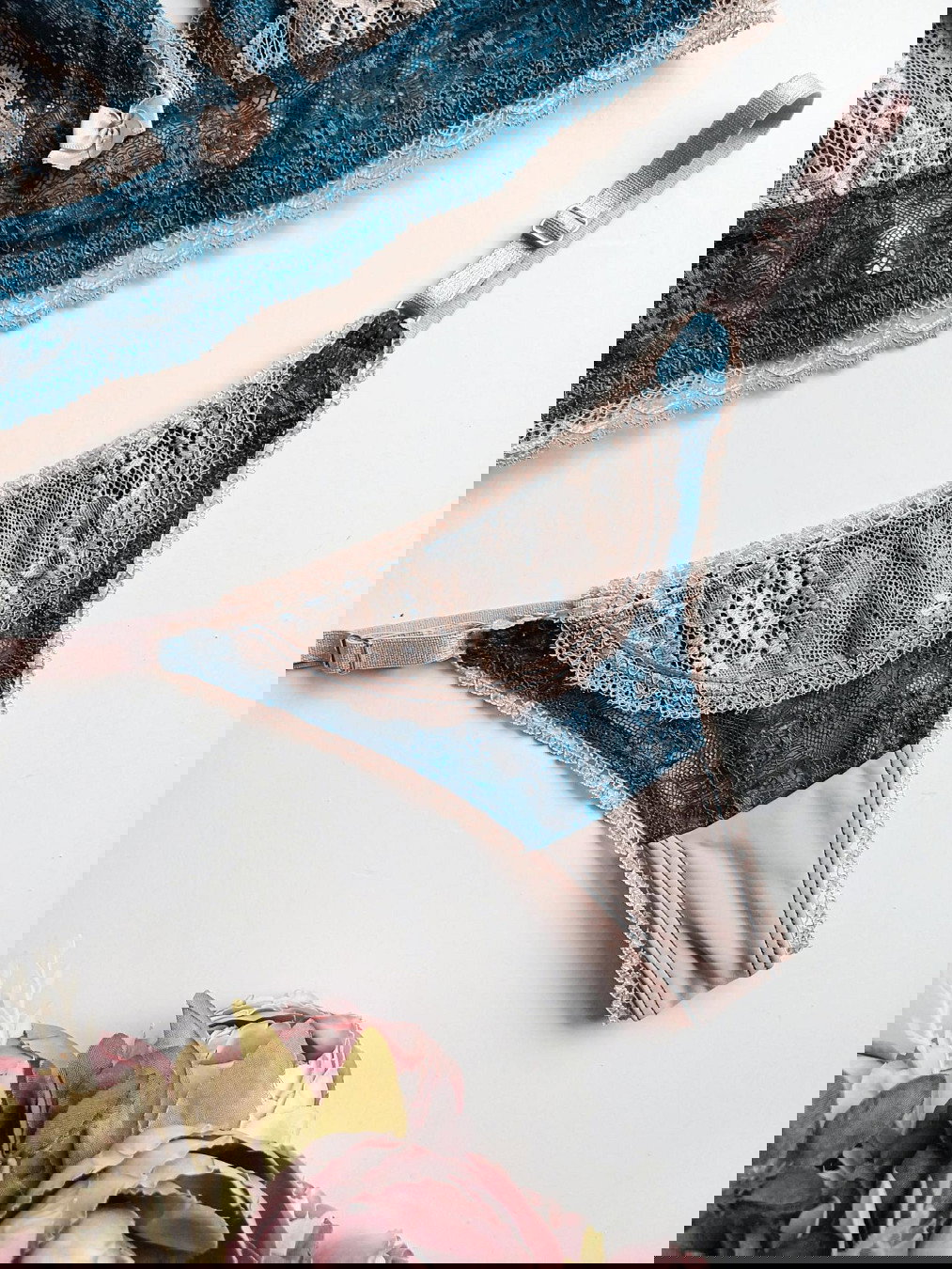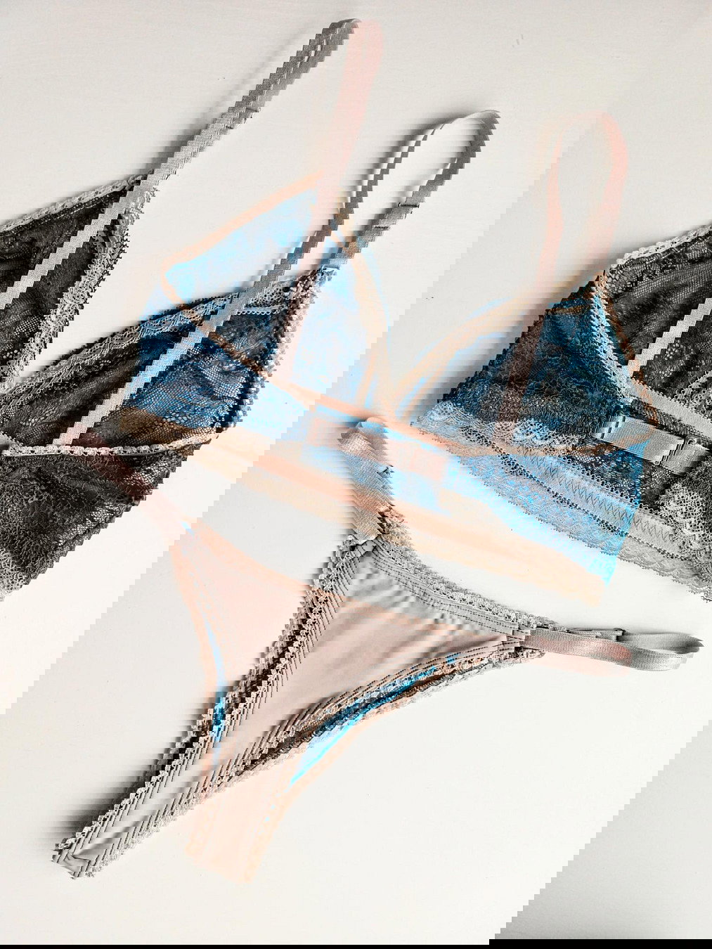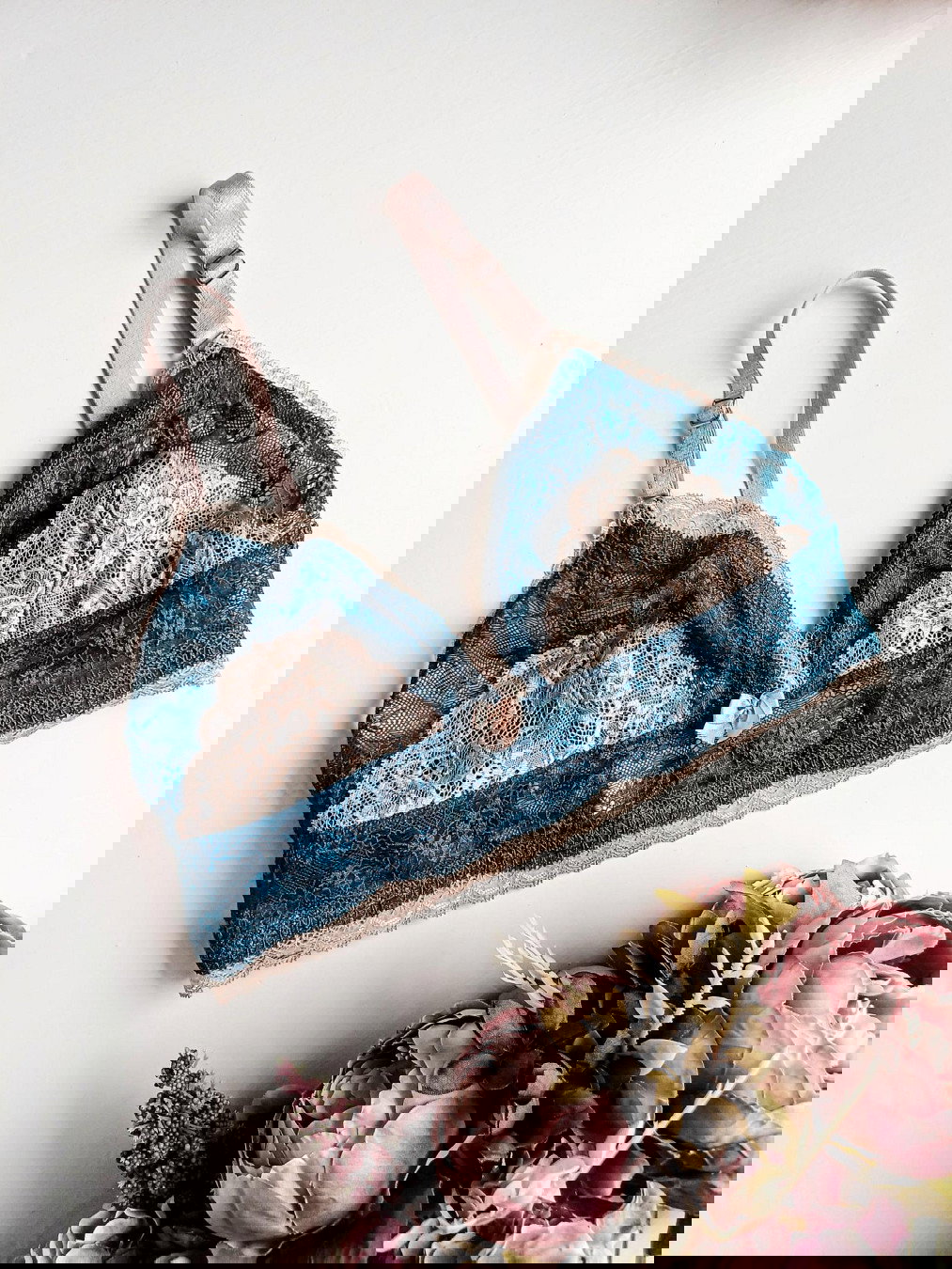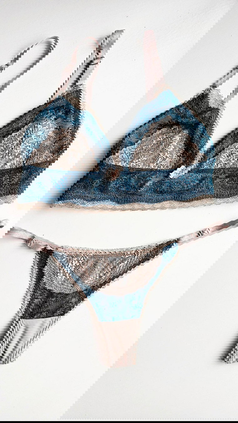 Conjunto de corpiño triangulo y tanga cola less en puntilla petroleo y detalles en avellana, diseñado para realzar tu feminidad con elegancia. Esta prenda combina comodidad y estilo, perfecta para cualquier ocasión especial o para sentirte única en el día a día.