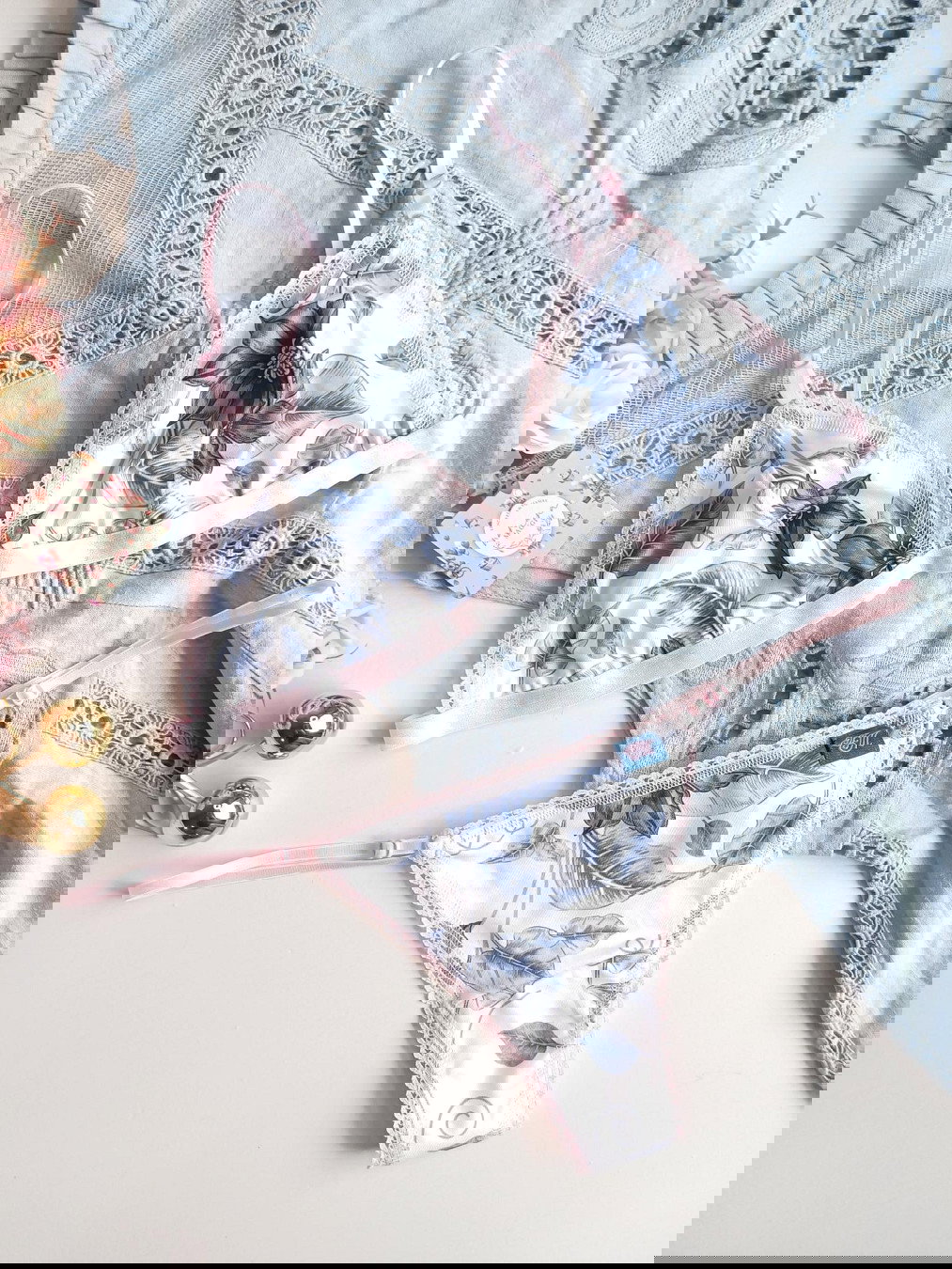Corpiño triangulo con tanga cola less en microfibra estampada
