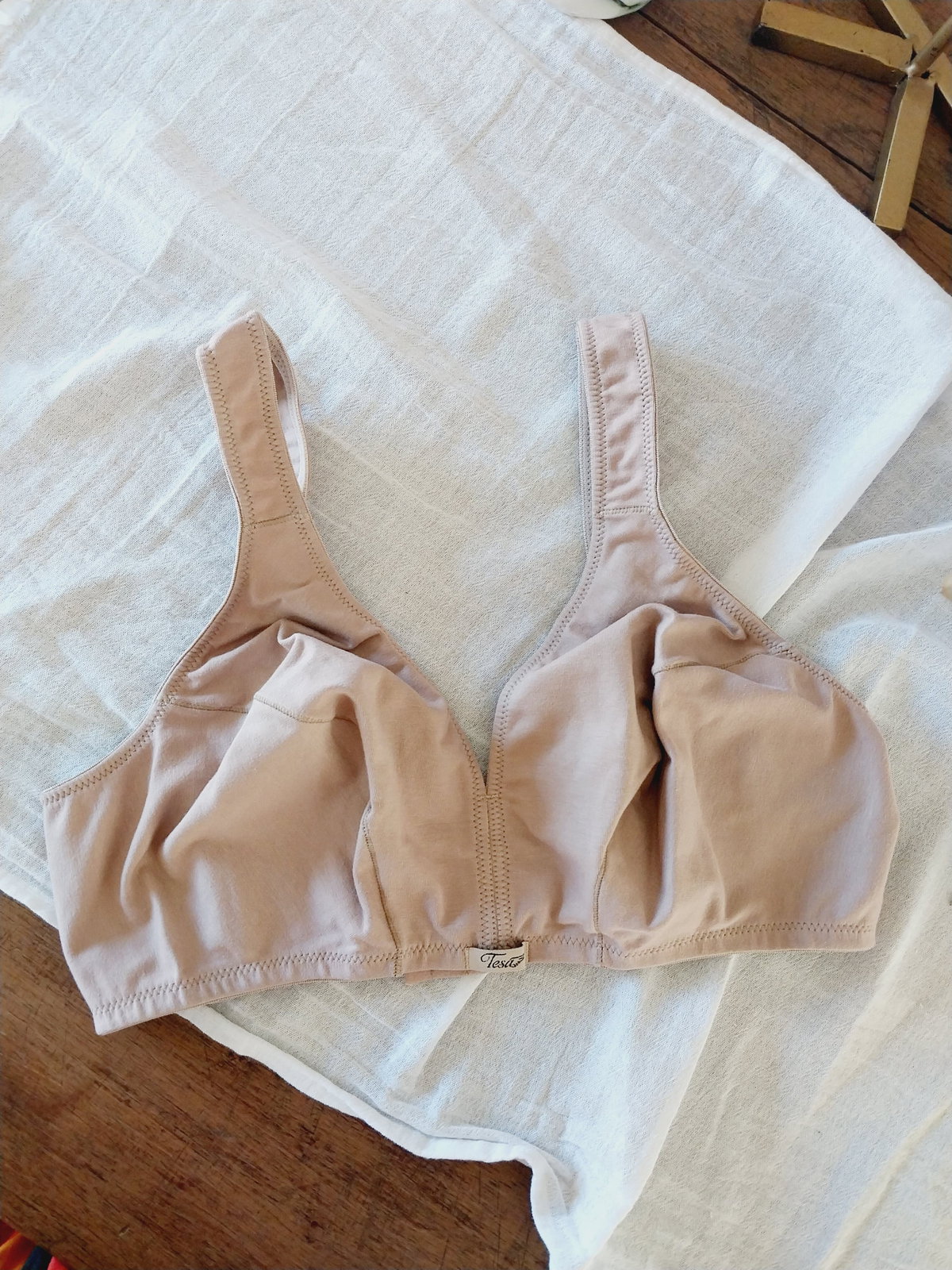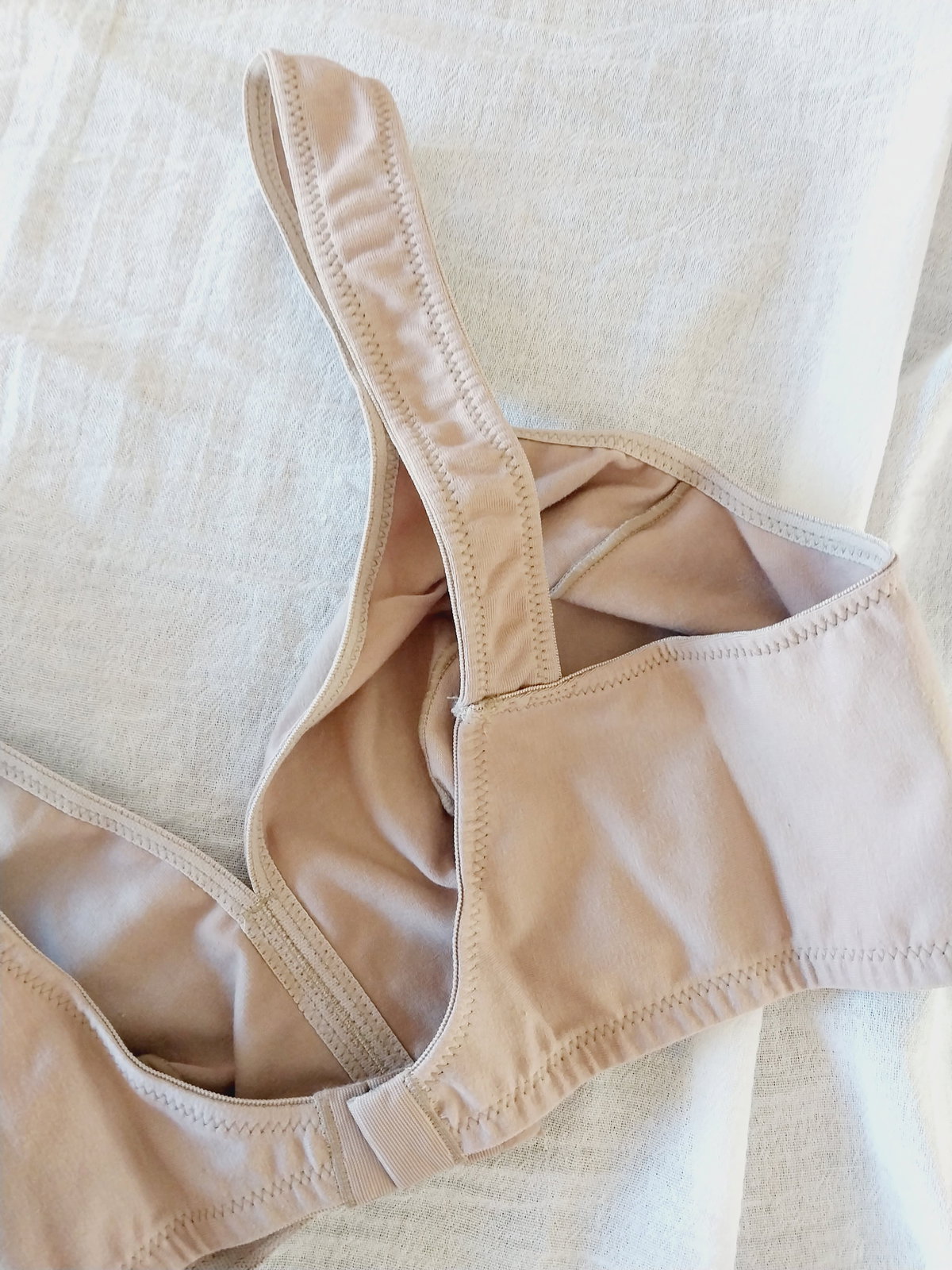 Corpiño básico de algodón con bretel ancho sin regulación.