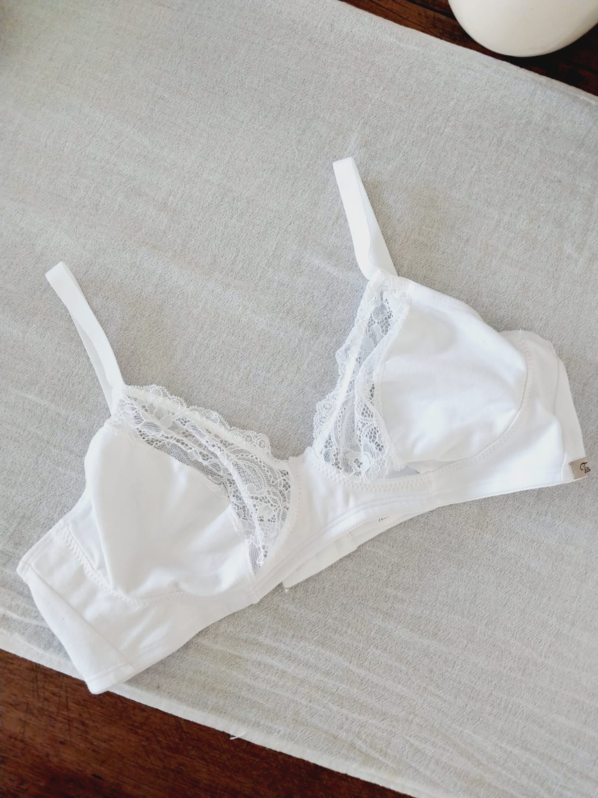 Corpiño de algodón con escote de puntilla vaina elastico sin aro regulación