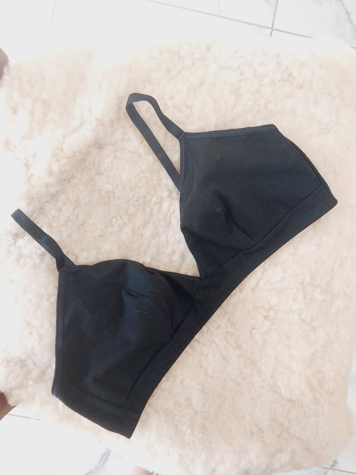 Corpiño triangulo CON BAJO BUSTO, de tela algodón con coleta ancha regulación y gancho desmontable en la espalda