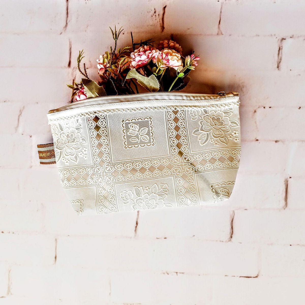 Neceser confeccionado en hule plástico con diseño de "encaje".