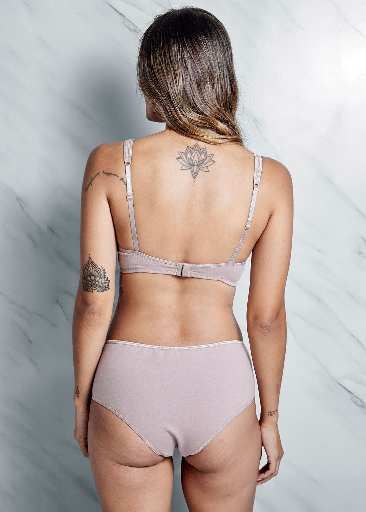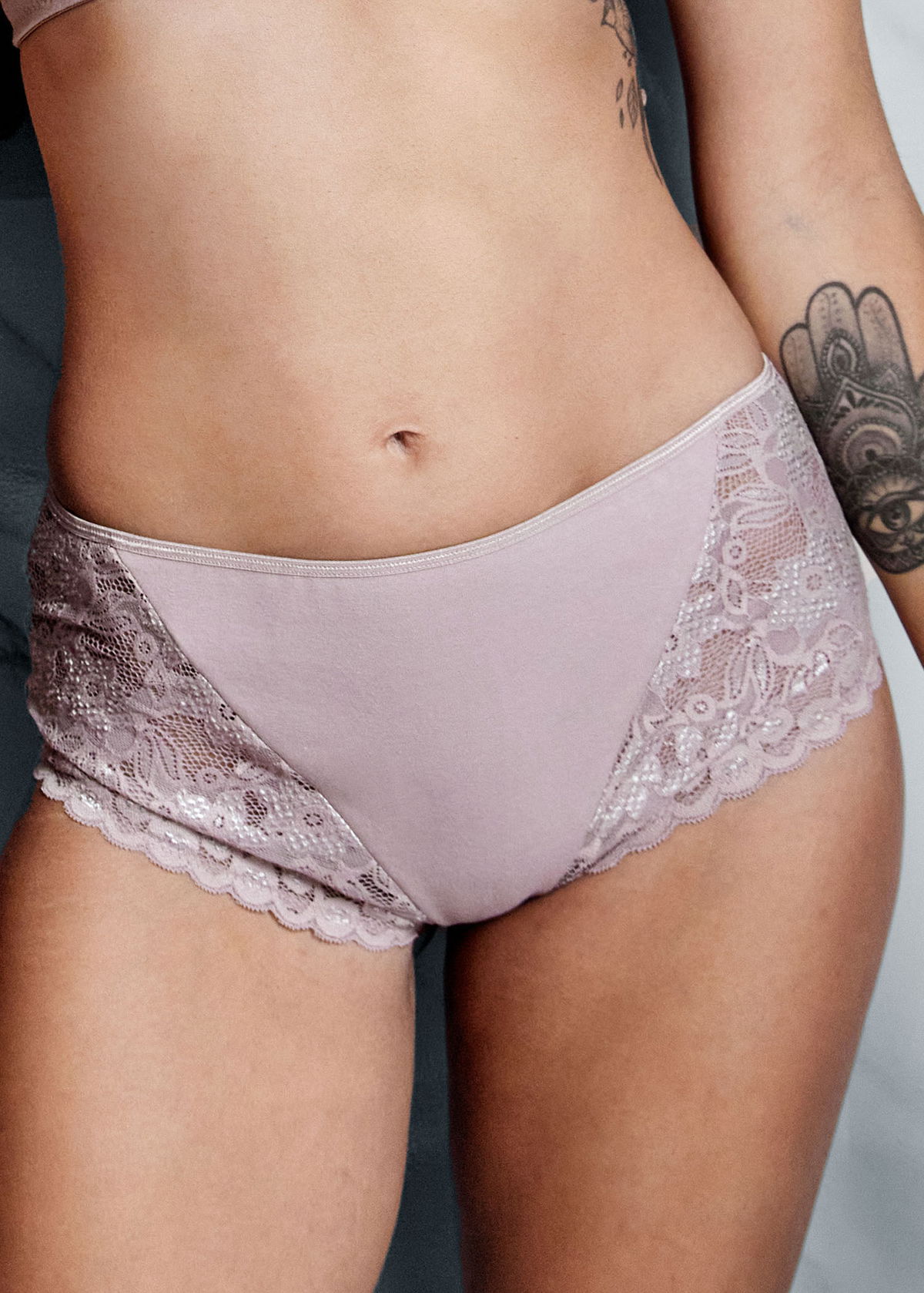 Bombacha tiro corto con detalle de puntilla elastizada en piernas delanteras.