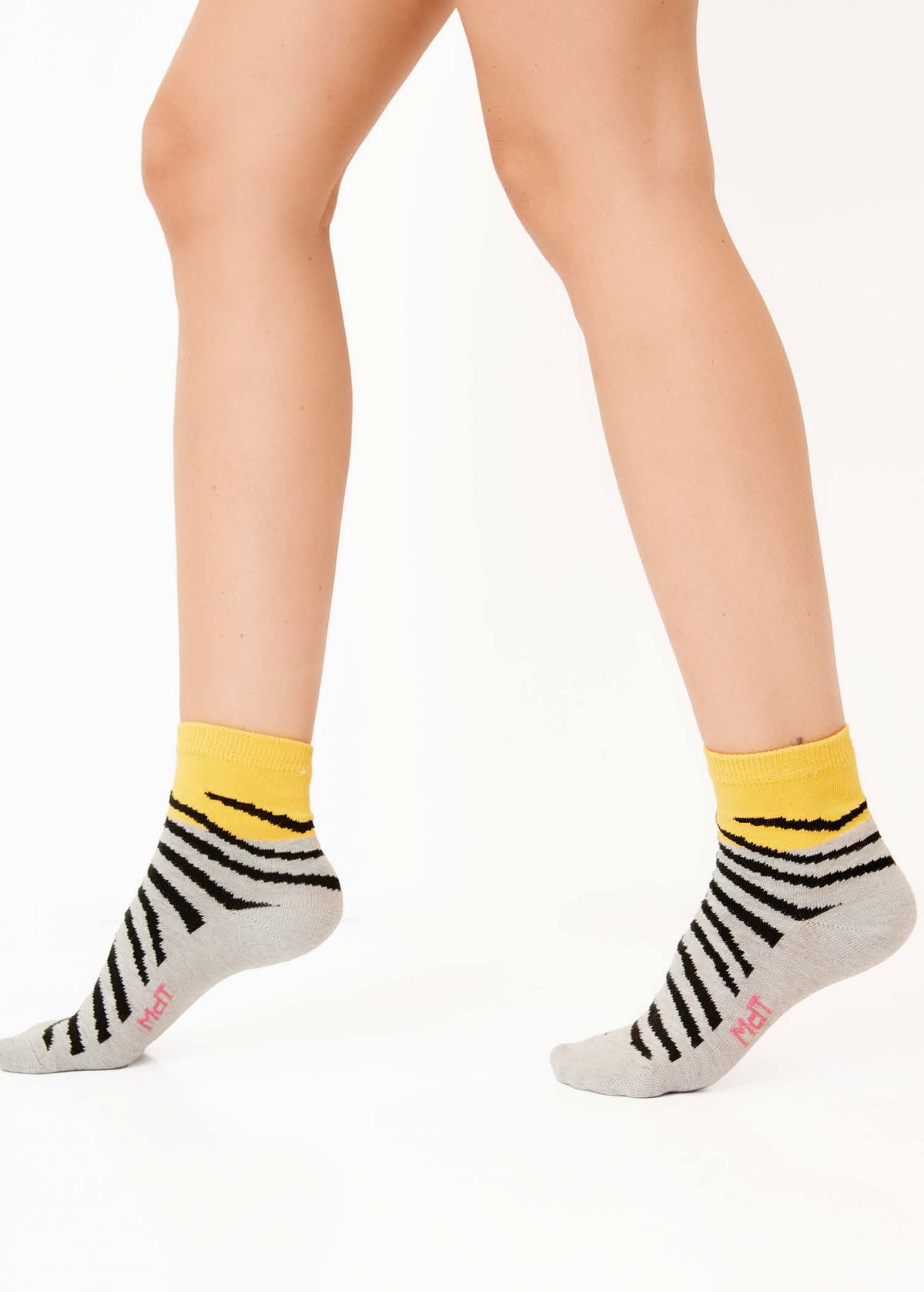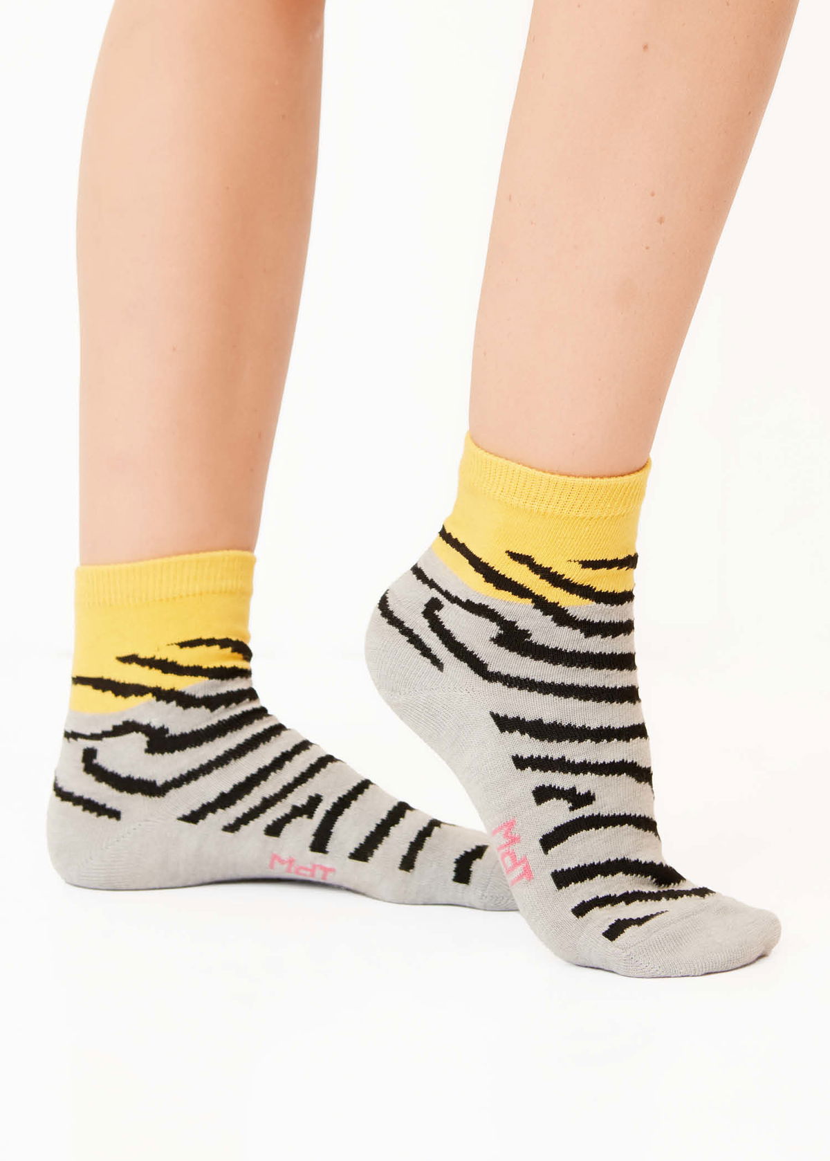 Media caña media alta con motivo de animal print en empeine y logo en planta.