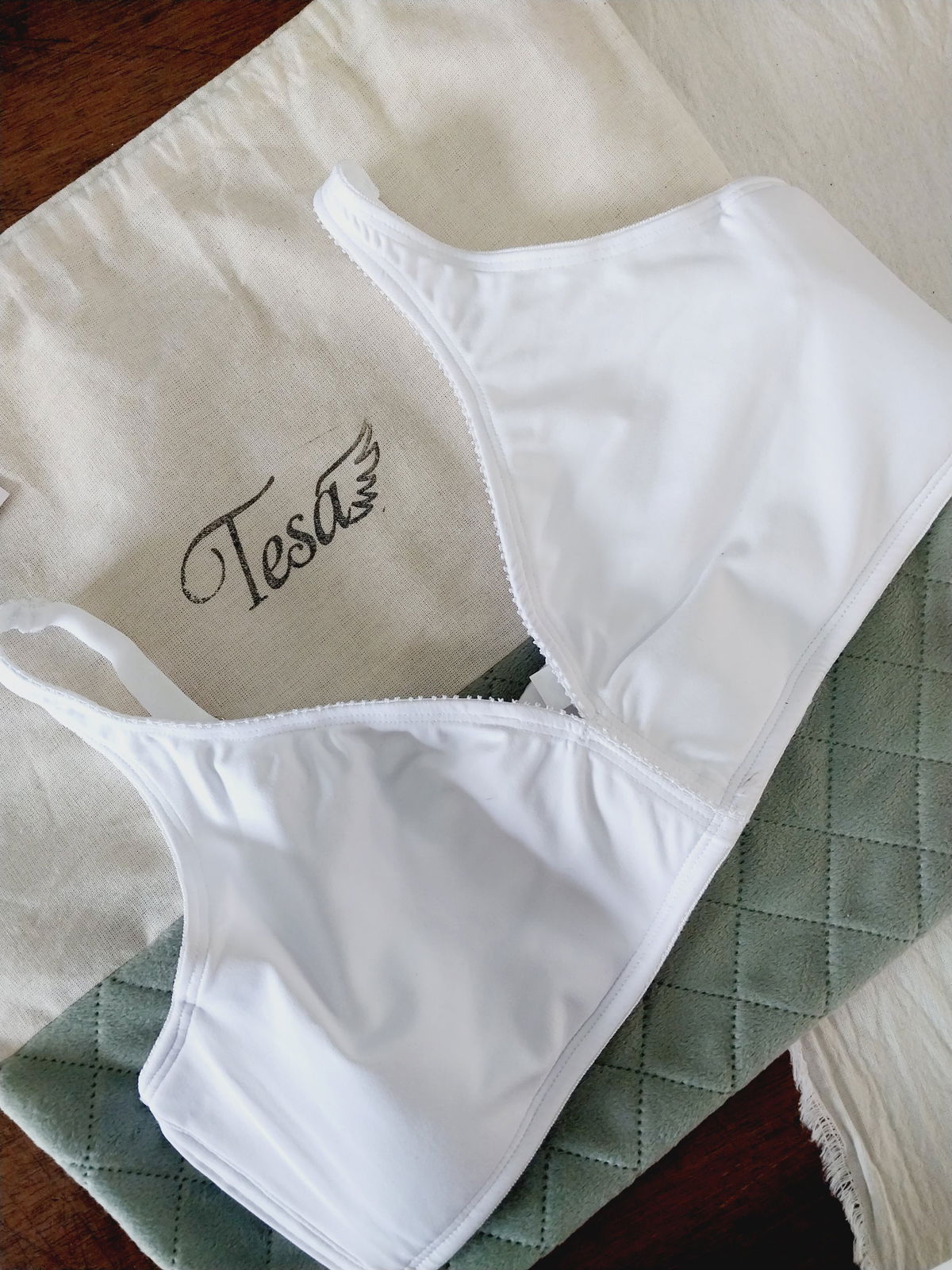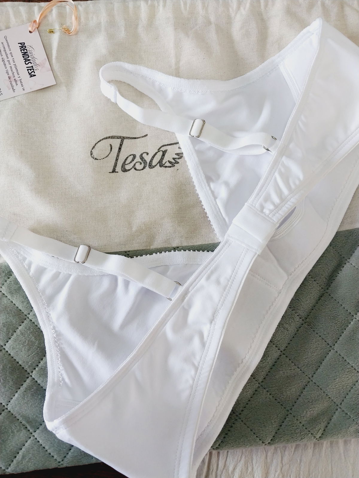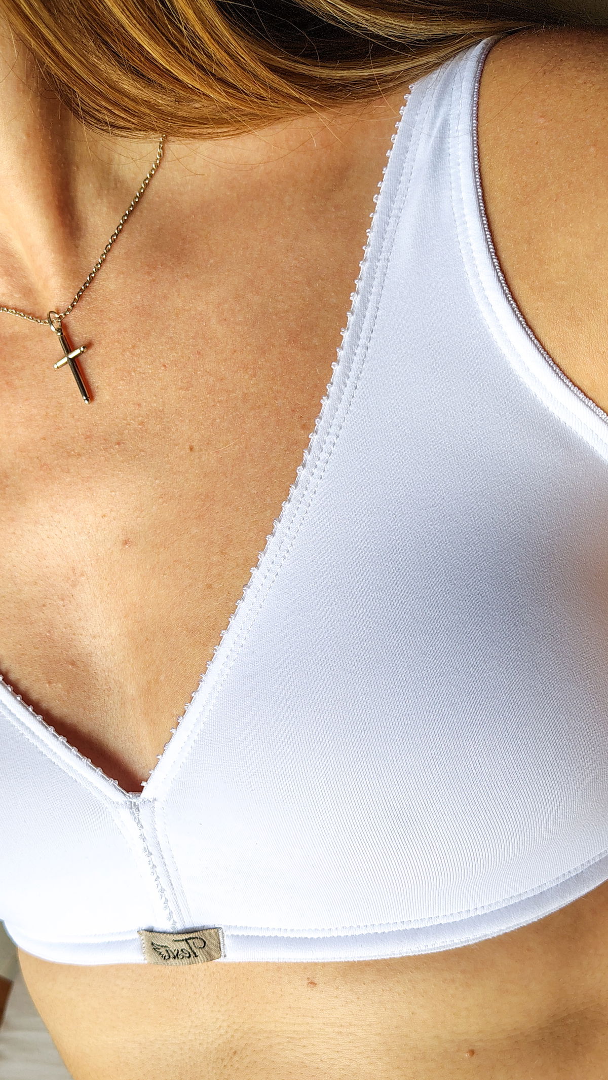 CORPIÑO triángulo de microfibra, ballenas a los costados y media luna de gomita interna