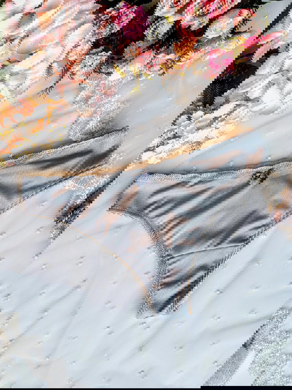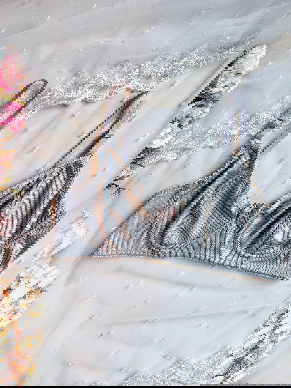 conjunto de corpiño con aro bajo y bombacha cola less en morley gris con brillo