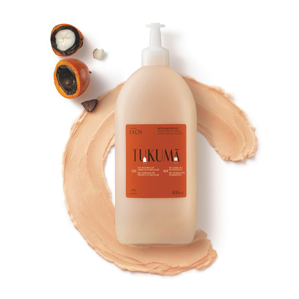 En la selva, el tukumá tiene la impresionante capacidad de renovación: después de un incendio, uno de los primeros árboles a brotar es esta resiliente palmera. El fruto del tukumá posee propiedades que combaten las señales de envejecimiento de la piel. El óleo combate la pérdida de ácido hialurónico y la manteca estimula su producción natural. Este bioactivo hidrata la piel y rellena las capas más profundas de la dermis, dejándola renovada y uniforme.