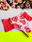 Bombacha truza confeccionada en encaje estampado de corazones rojos sobre fondo rosa, laterales de puntilla a tono