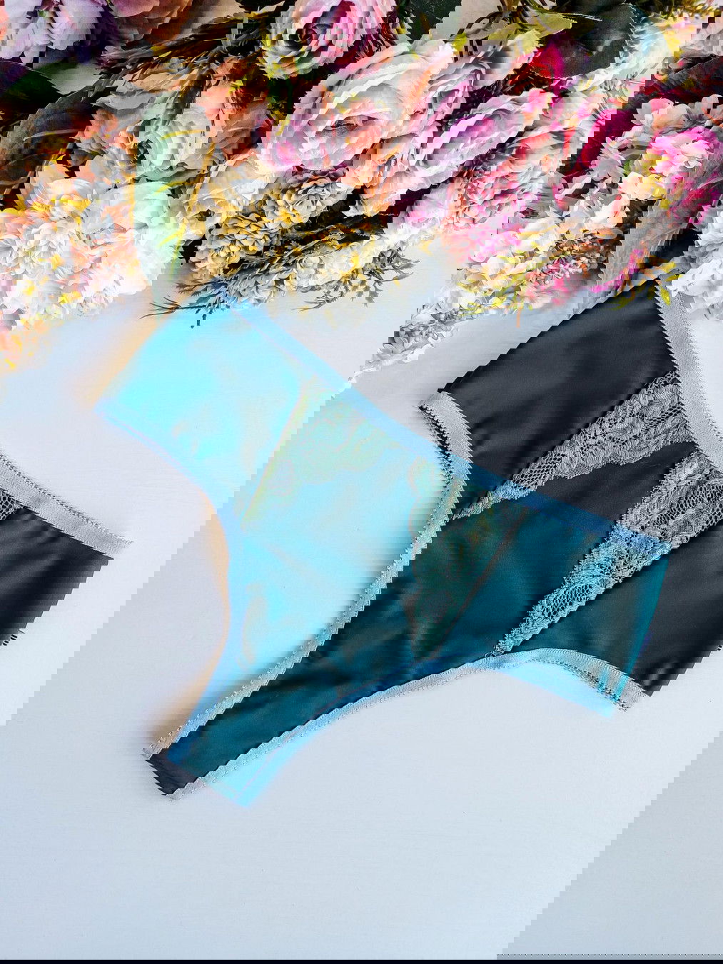 Culottin cola less tiro alto confeccionado en lycra color verde con detalles de puntilla a tono.