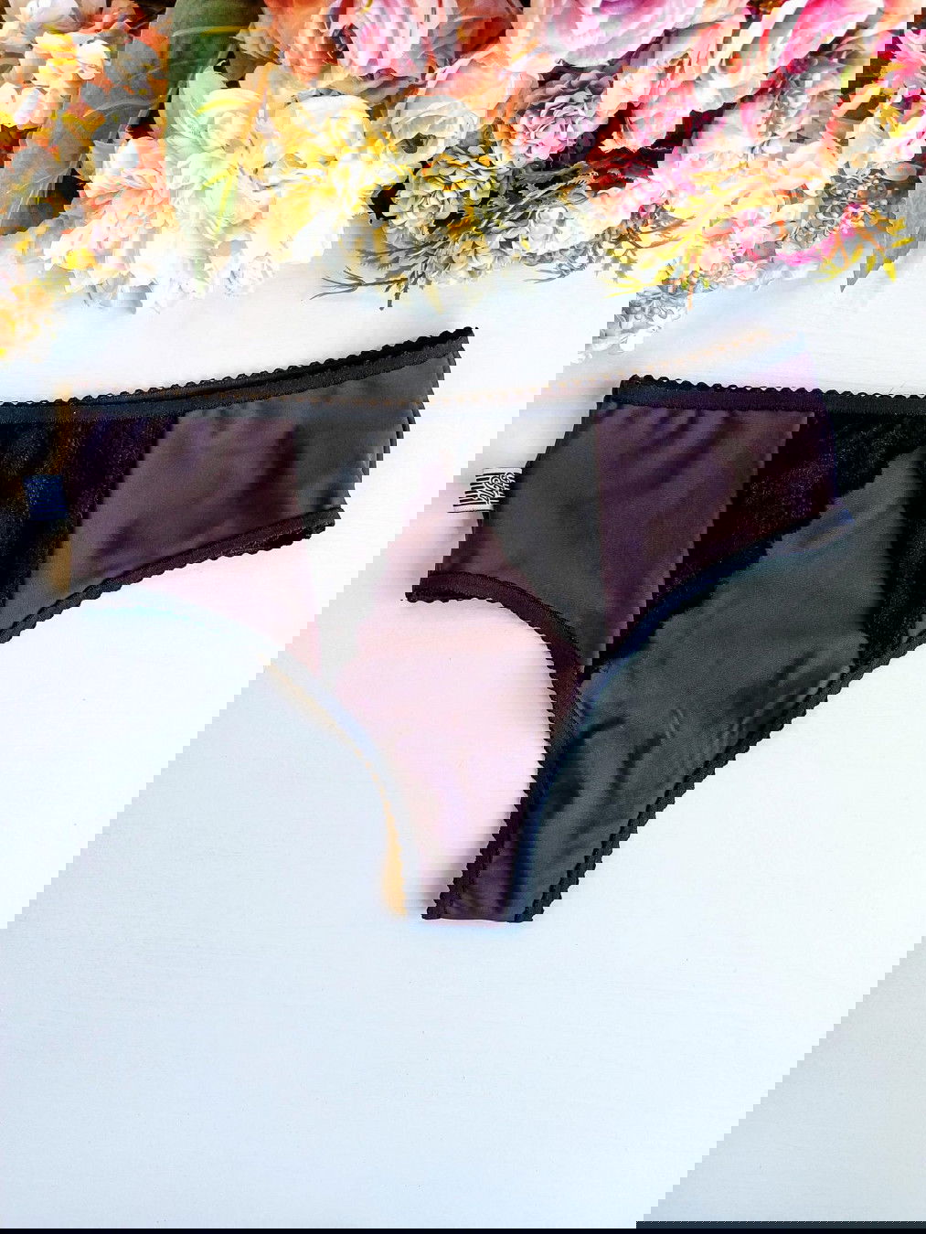 Culottin cola less tiro alto confeccionado en lycra color chocolate con detalles de puntilla a tono.