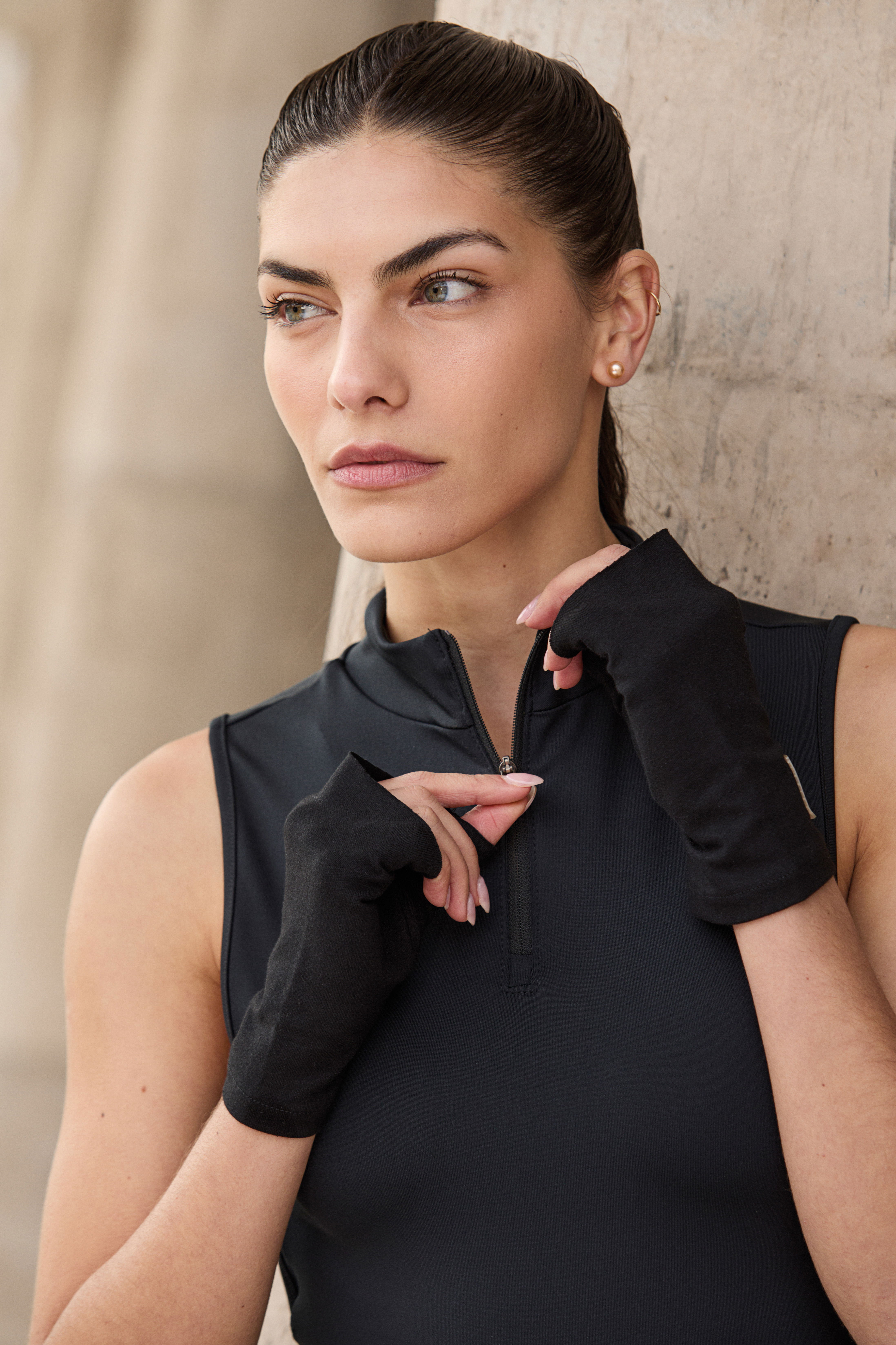 Cuello con cierre y detalle de abertura en espalda.
