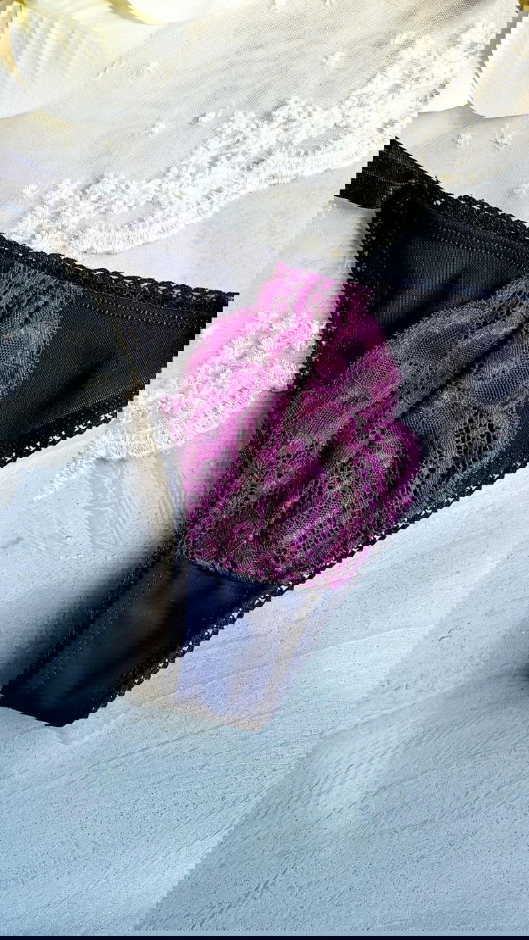 Tanga colaless confeccionada en powernet negro con detalle en puntilla negra o borravino.
