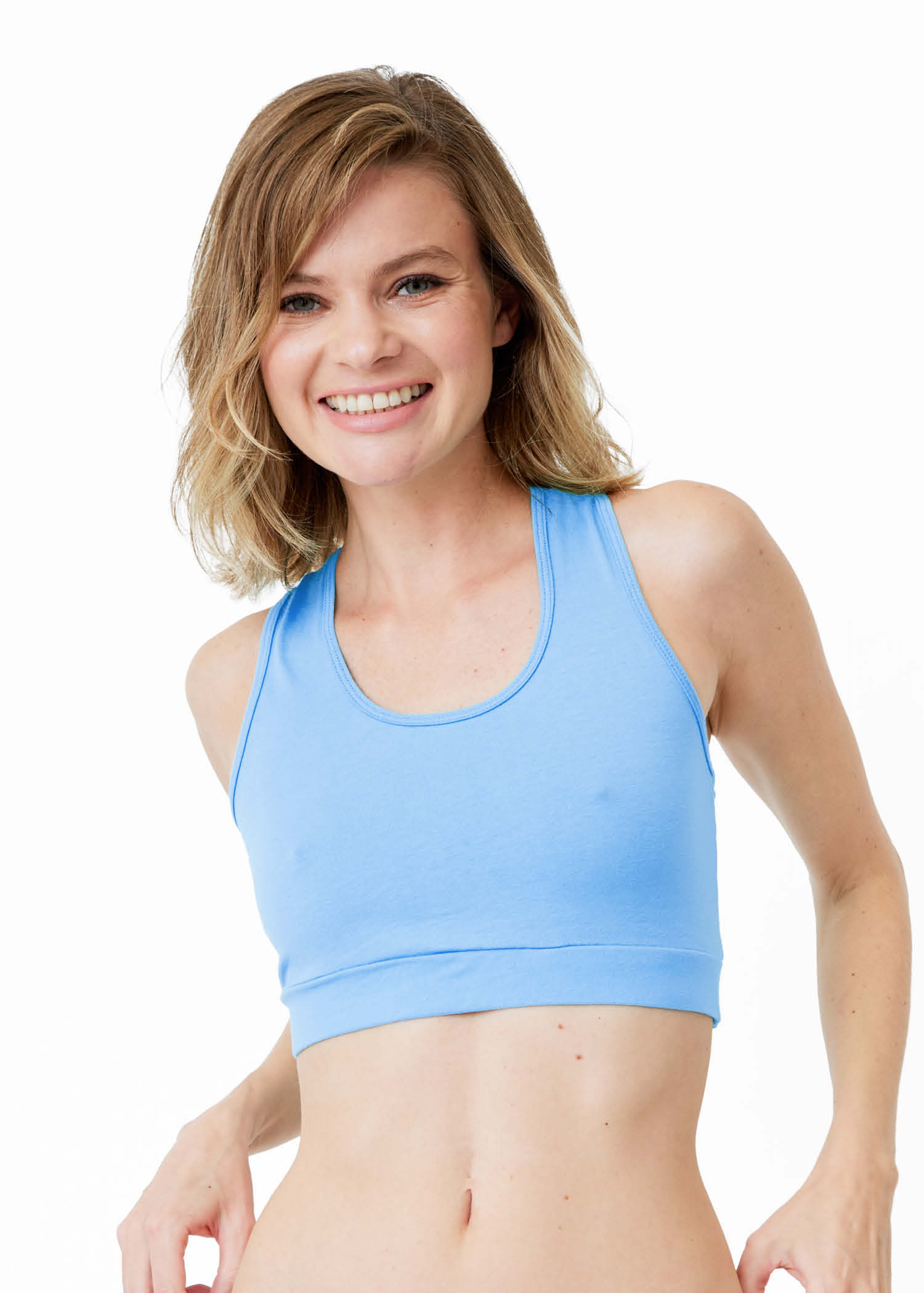 Top con espalda tipo deportivo y terminación de elástico embutido para mayor comodidad y calce perfecto.