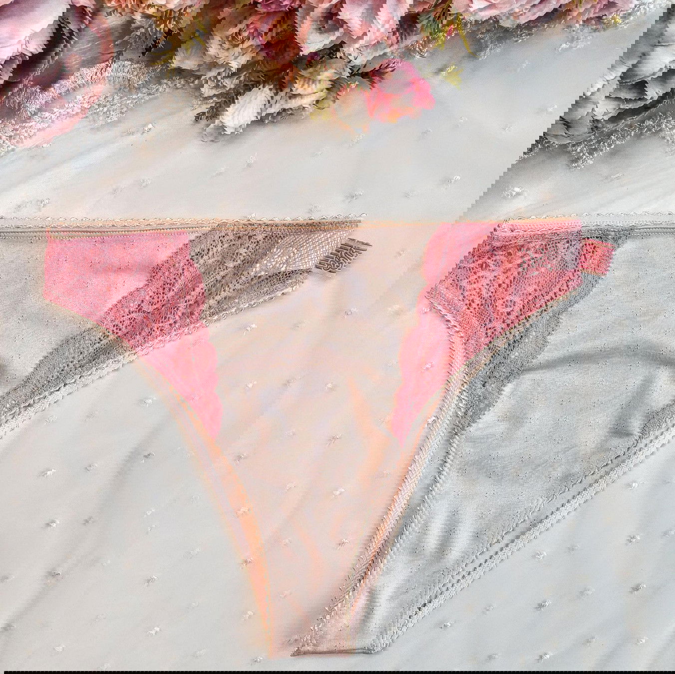 Vedetina tiro alto en microfibra calada rosada con detalles en puntilla.