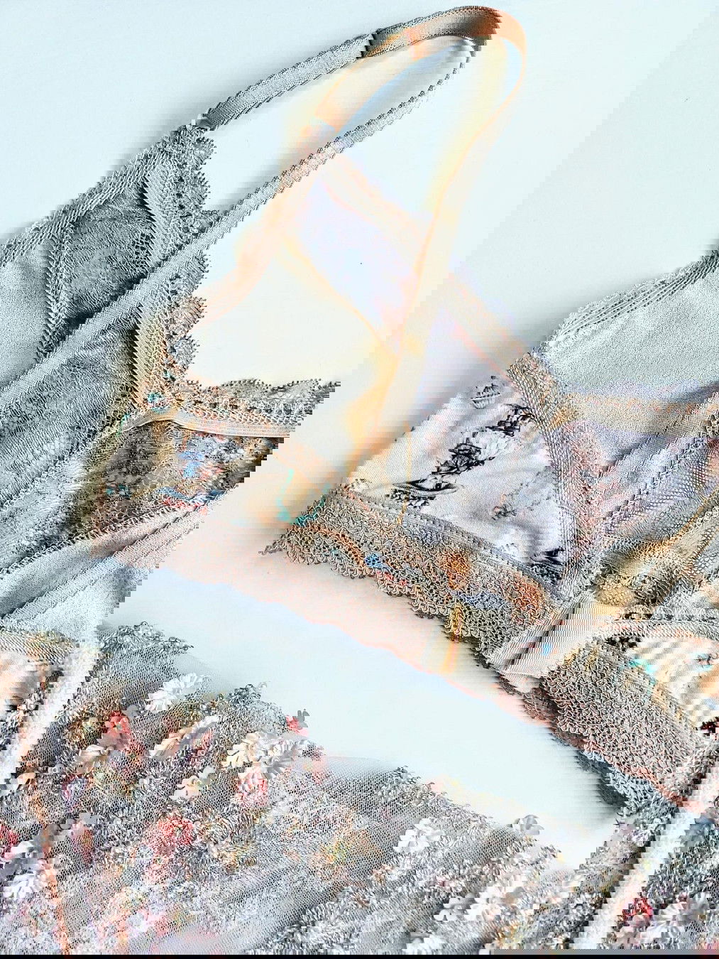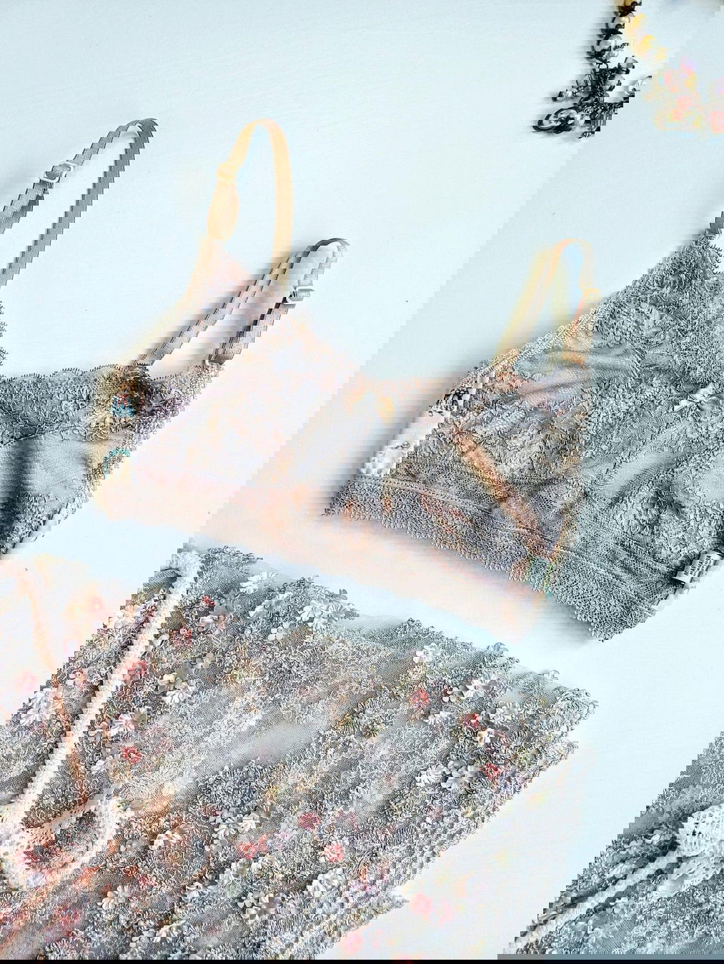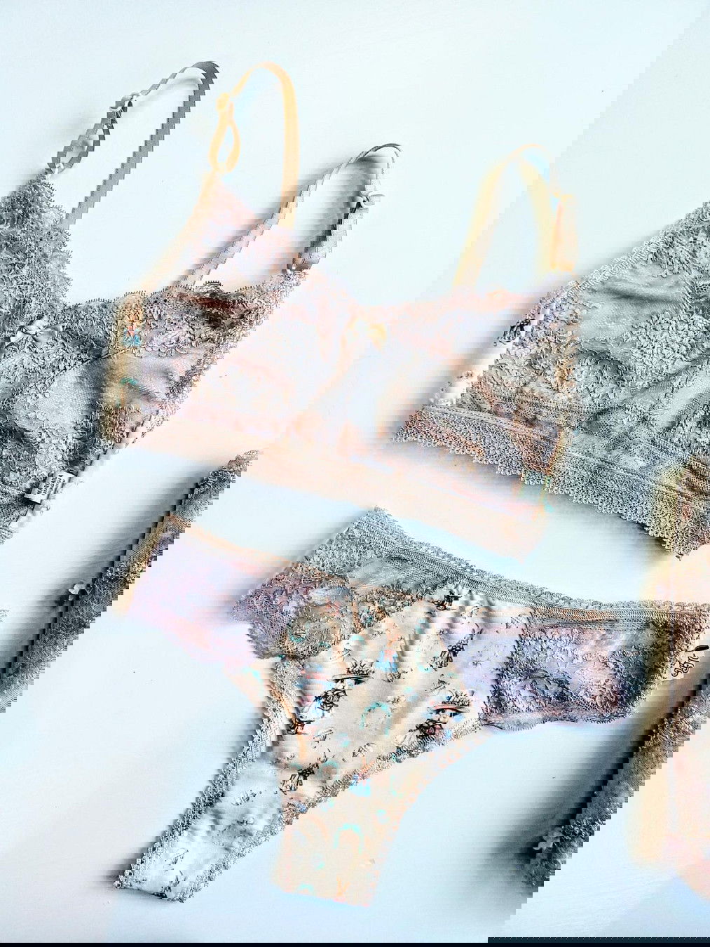 conjunto de corpiño tipo top con gancho y bombacha cola less en puntilla color piedra y modal conejos