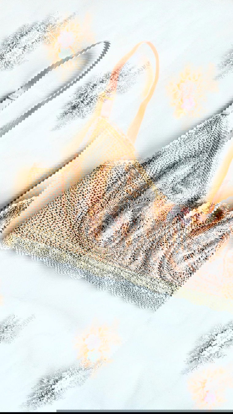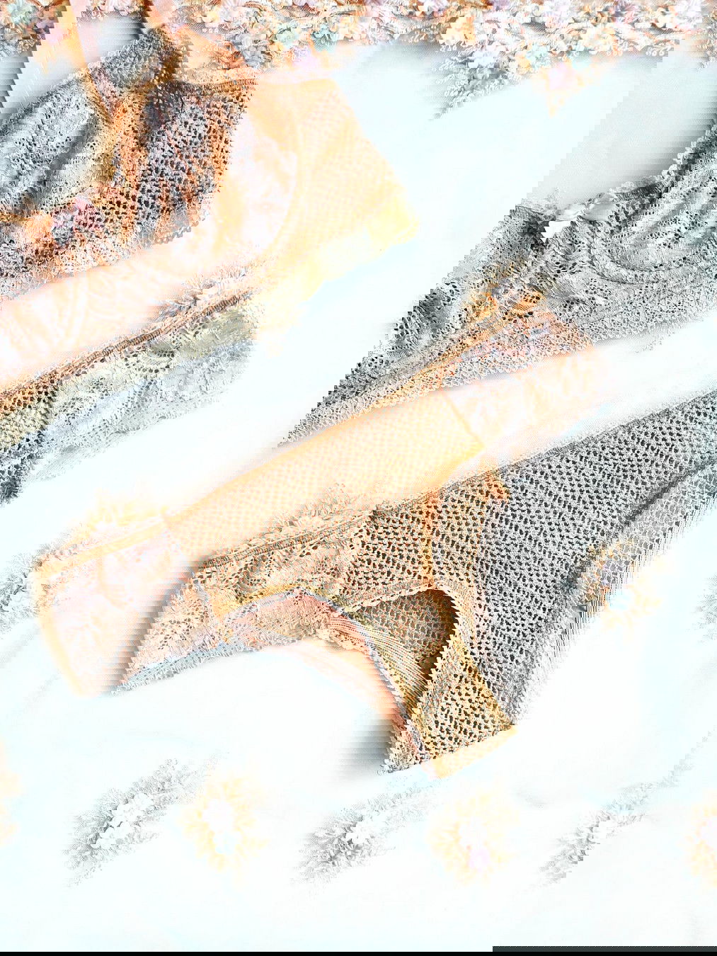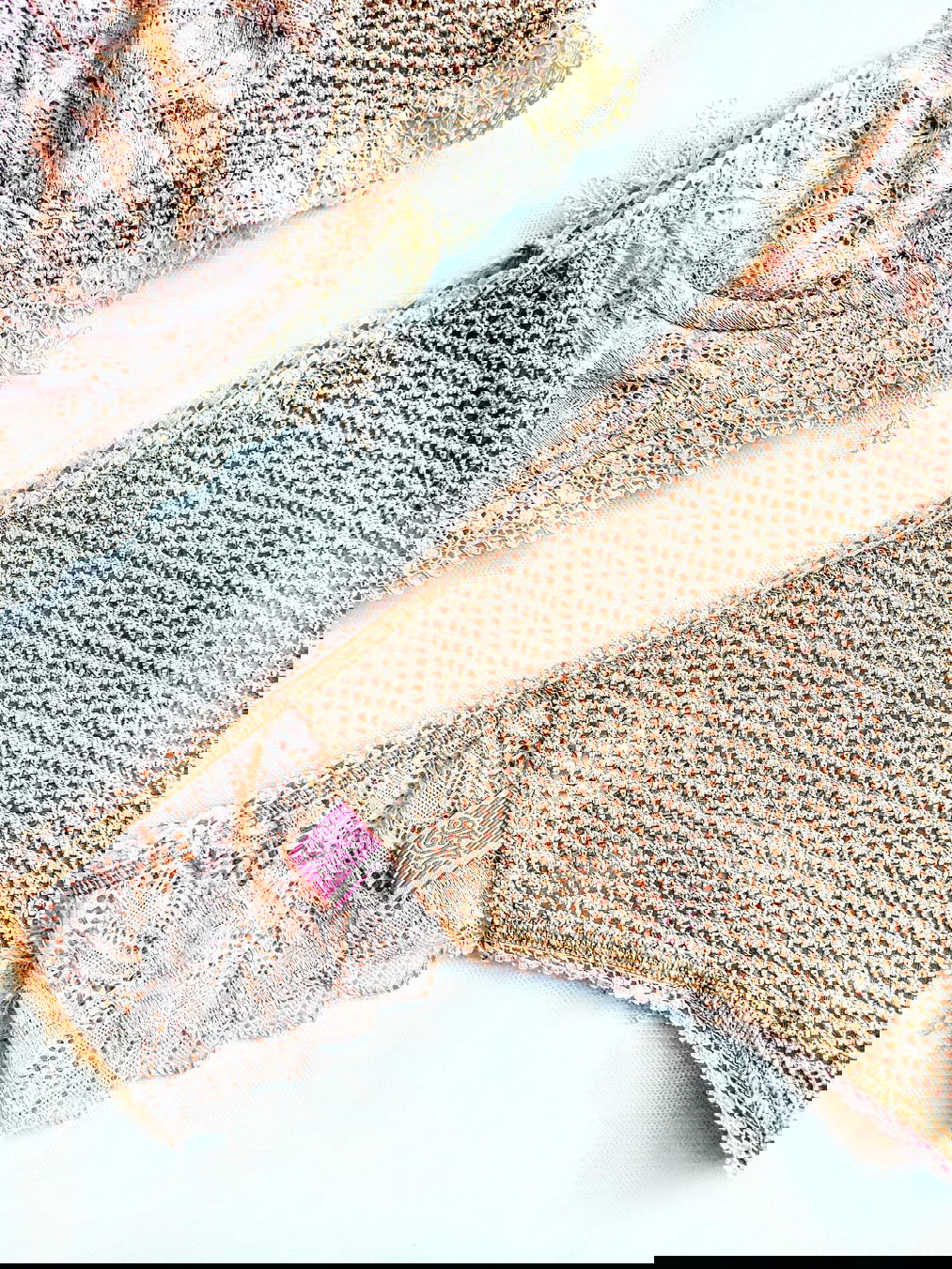 conjunto de corpiño con aro bajo y bombacha cola less en tejido tipo red en color tostado