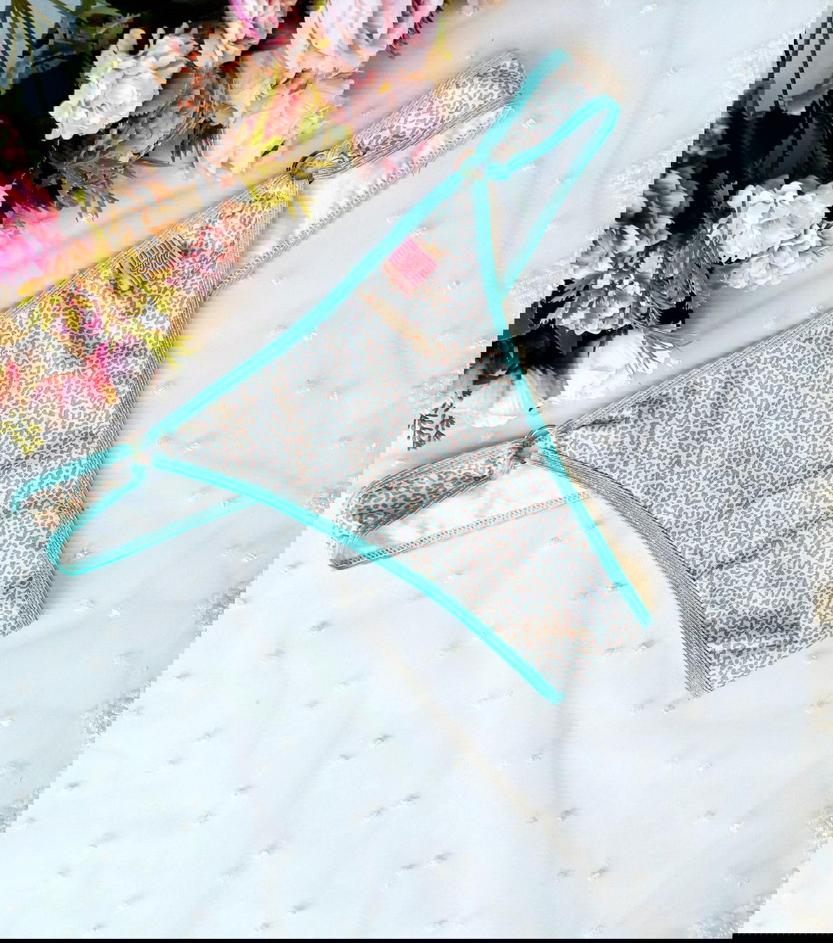 culottin cola less en lycra algodon print celeste y rosa con detalles de argollas