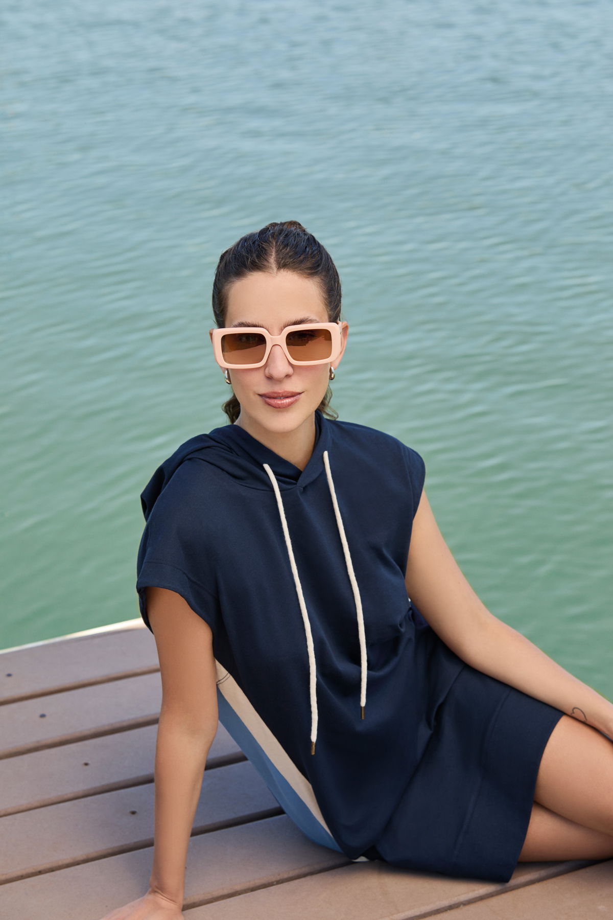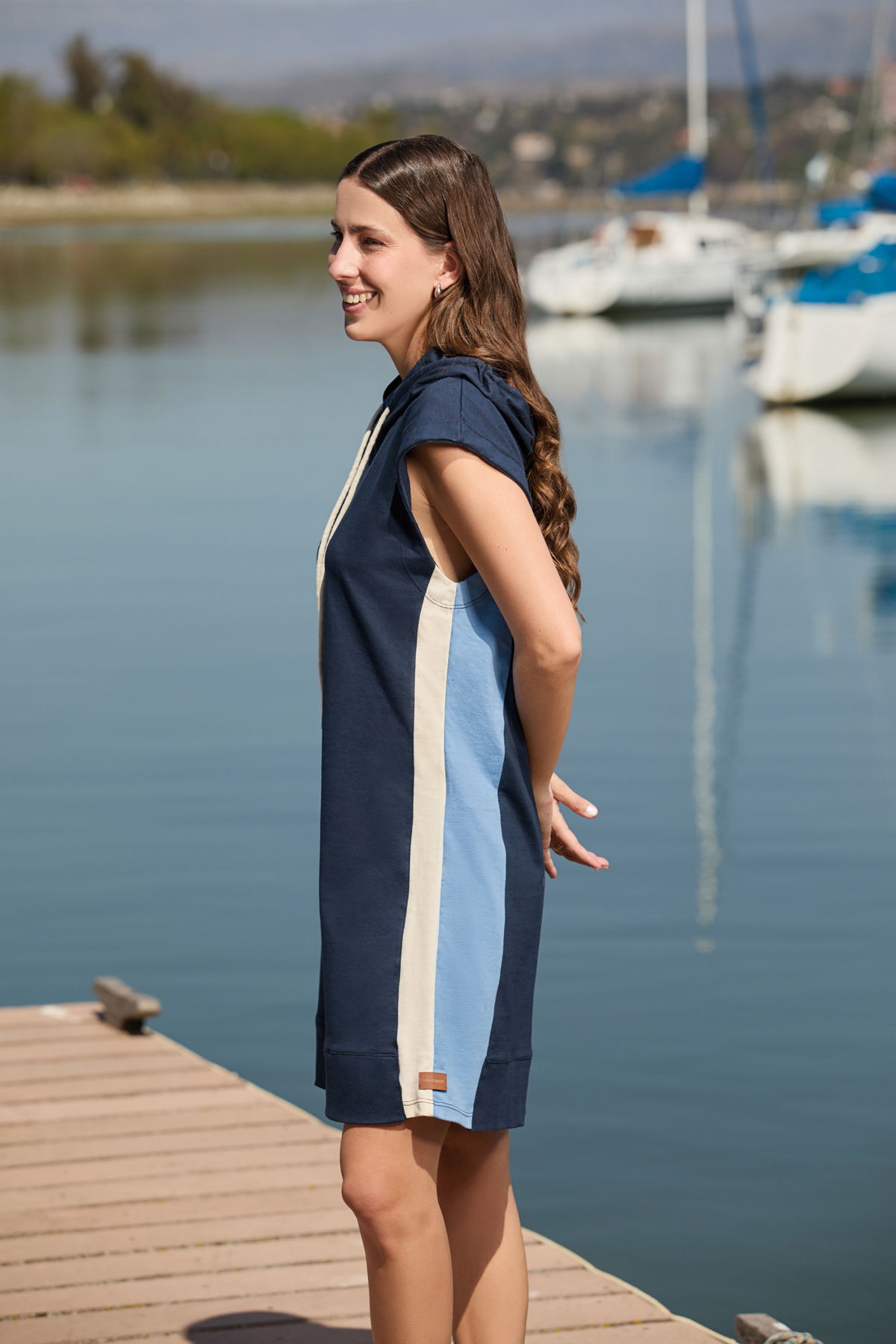 Con detalles acontratono y capuchacon cordón.Línea clásica.Algodón.Azul marino + Natural+ Azul lavanda.TALLE: S-M-L-XL