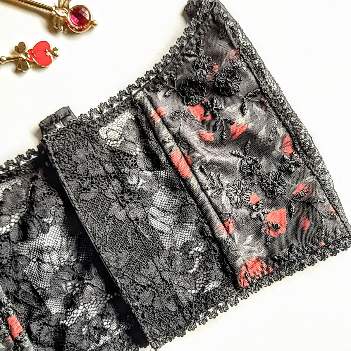corset sin copa en tul bordado negro y modal rosas