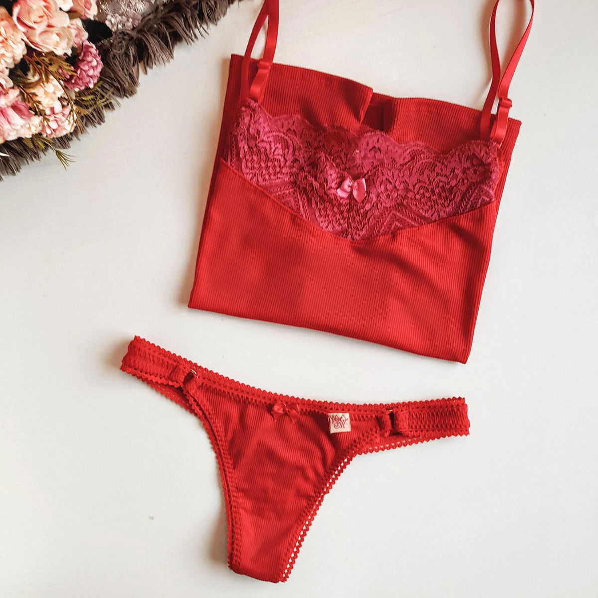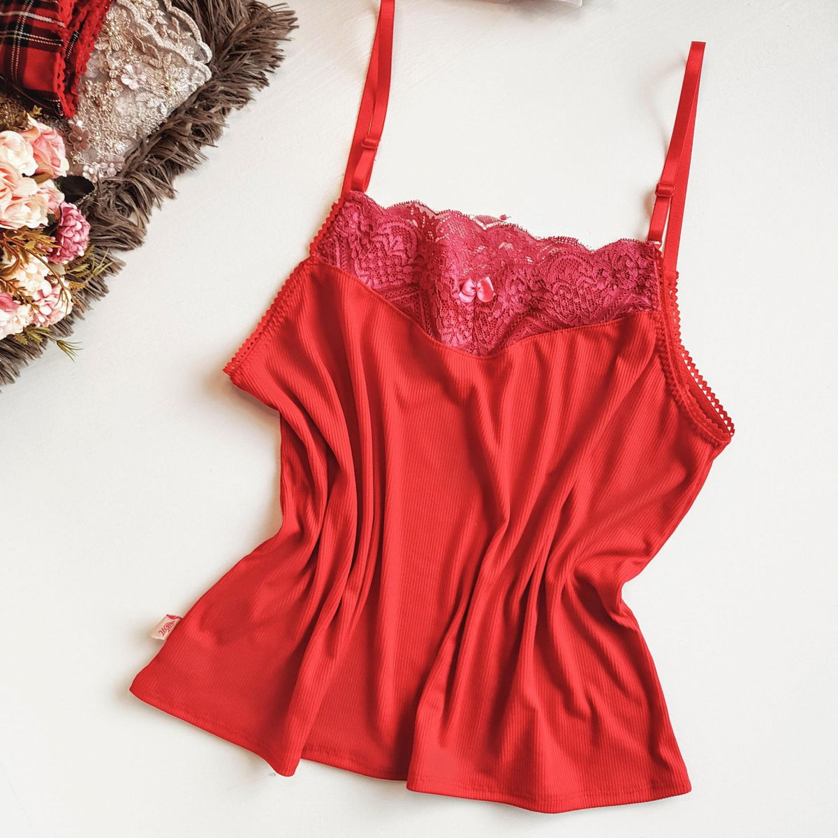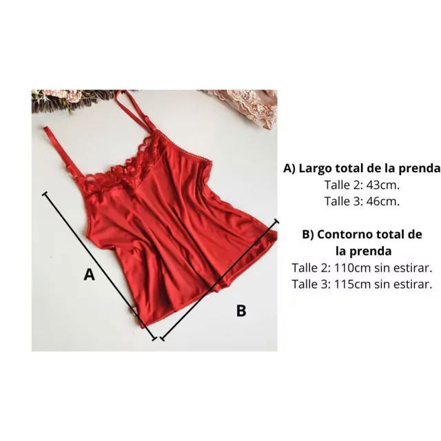 musculosa en morley rojo y puntilla fucsia