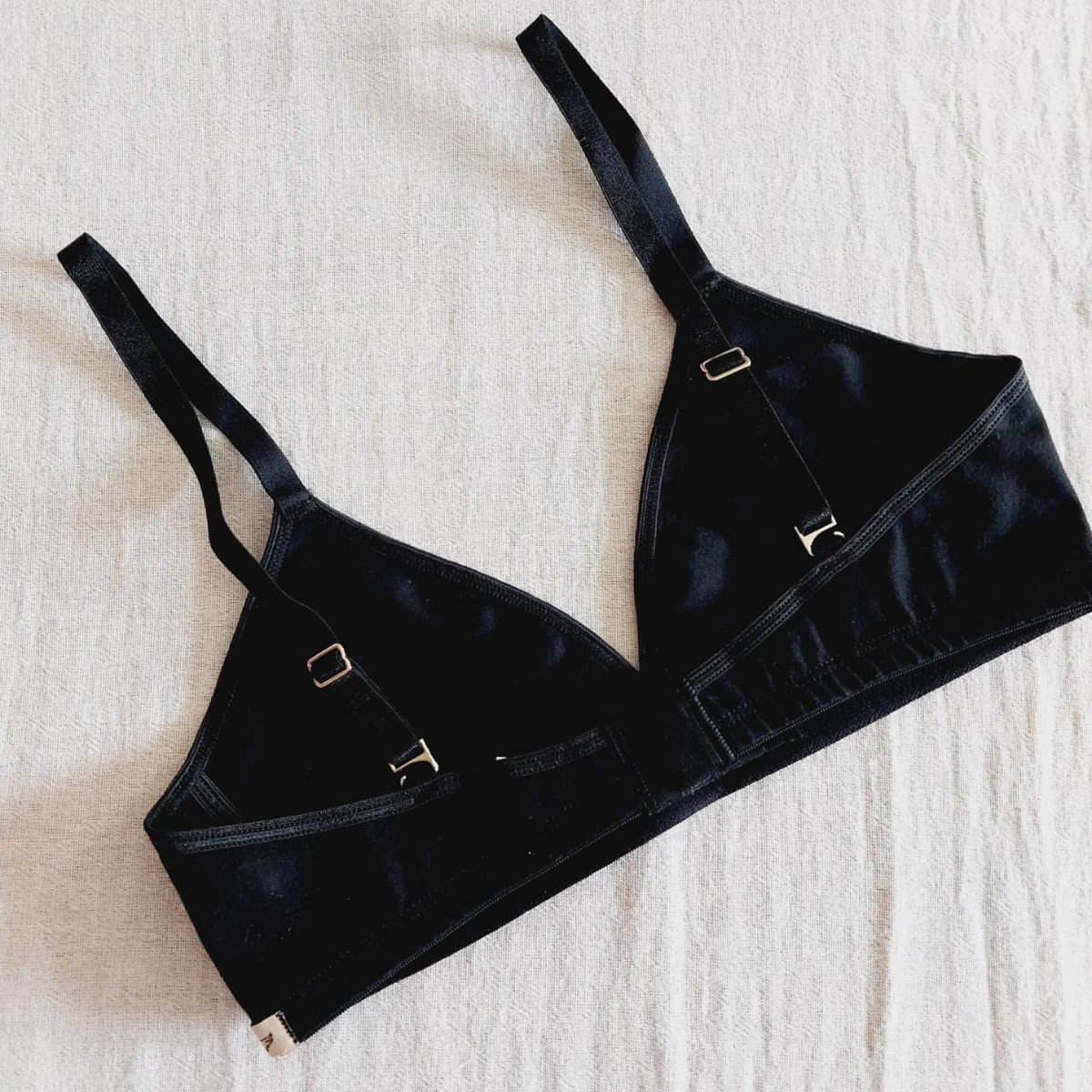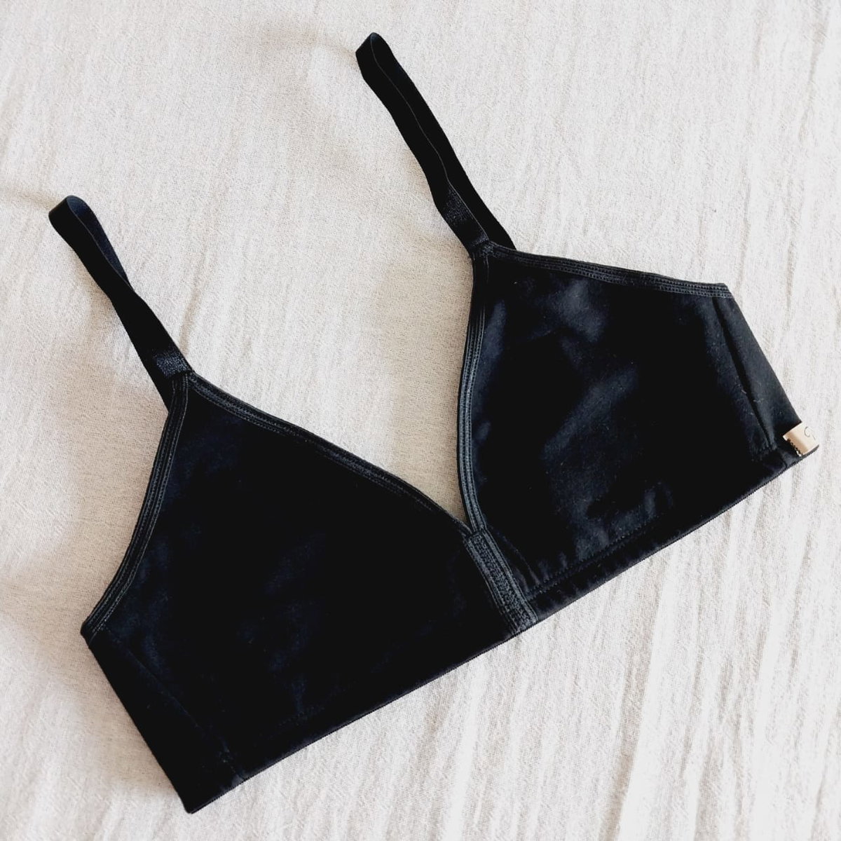 Corpiño triangulo de tela algodón con coleta ancha regulación y gancho desmontable en la espalda